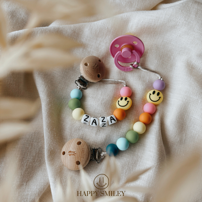 Speenkoord met naam | SMILEY RAINBOW