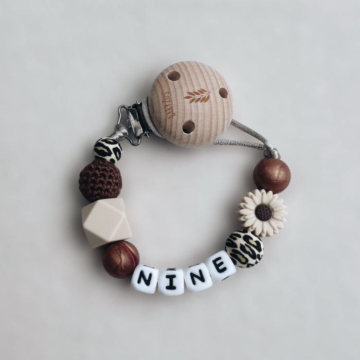 Speenkoord met naam | Koper luipaard bruin